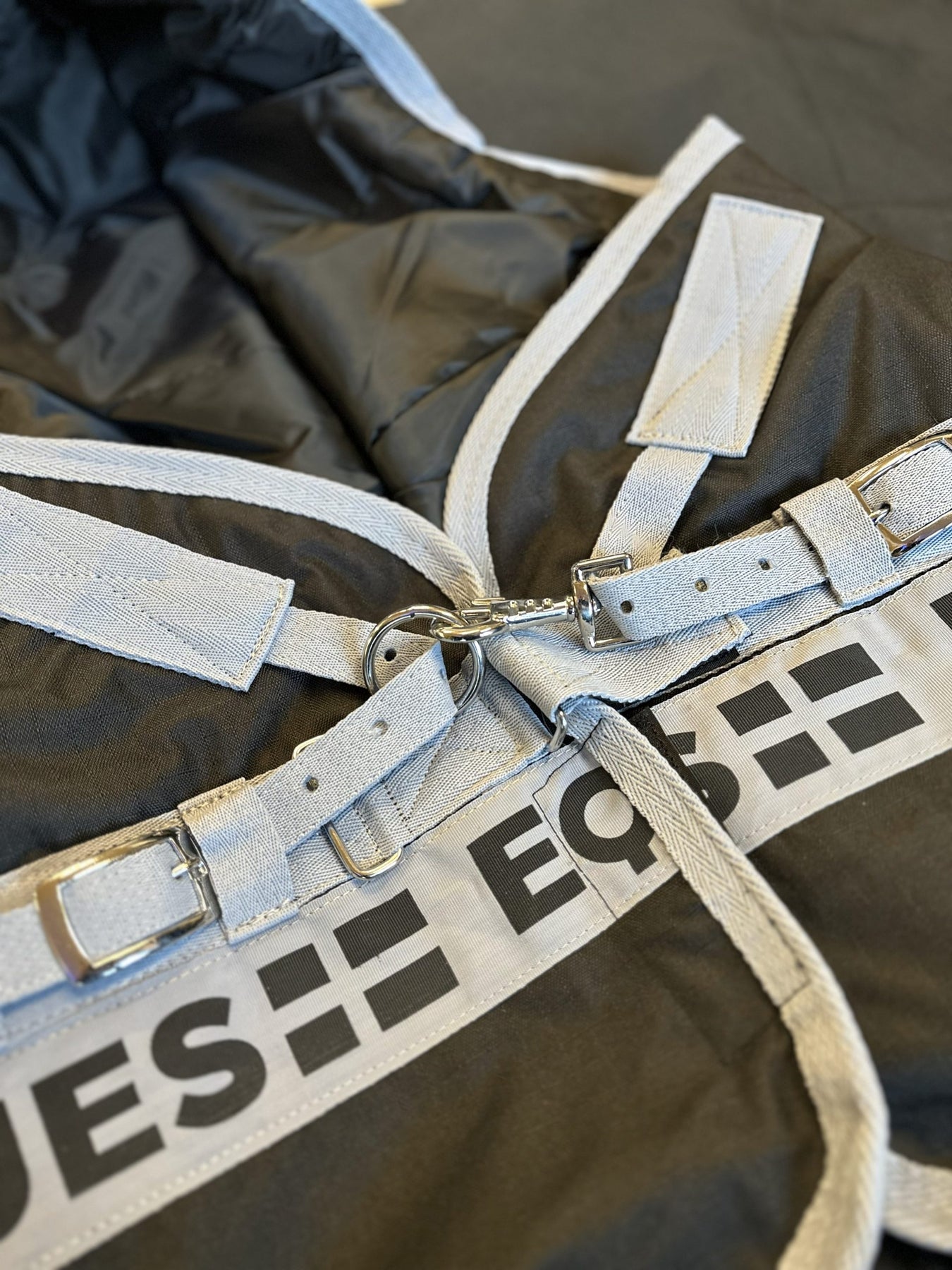 Täcket sätts fast med kryssgjordar, v-frontstängning, elastiska och avtagbara bakbensremmar samt en avtagbar svansrem, vilket ger hög funktionalitet och flexibilitet i användningen.