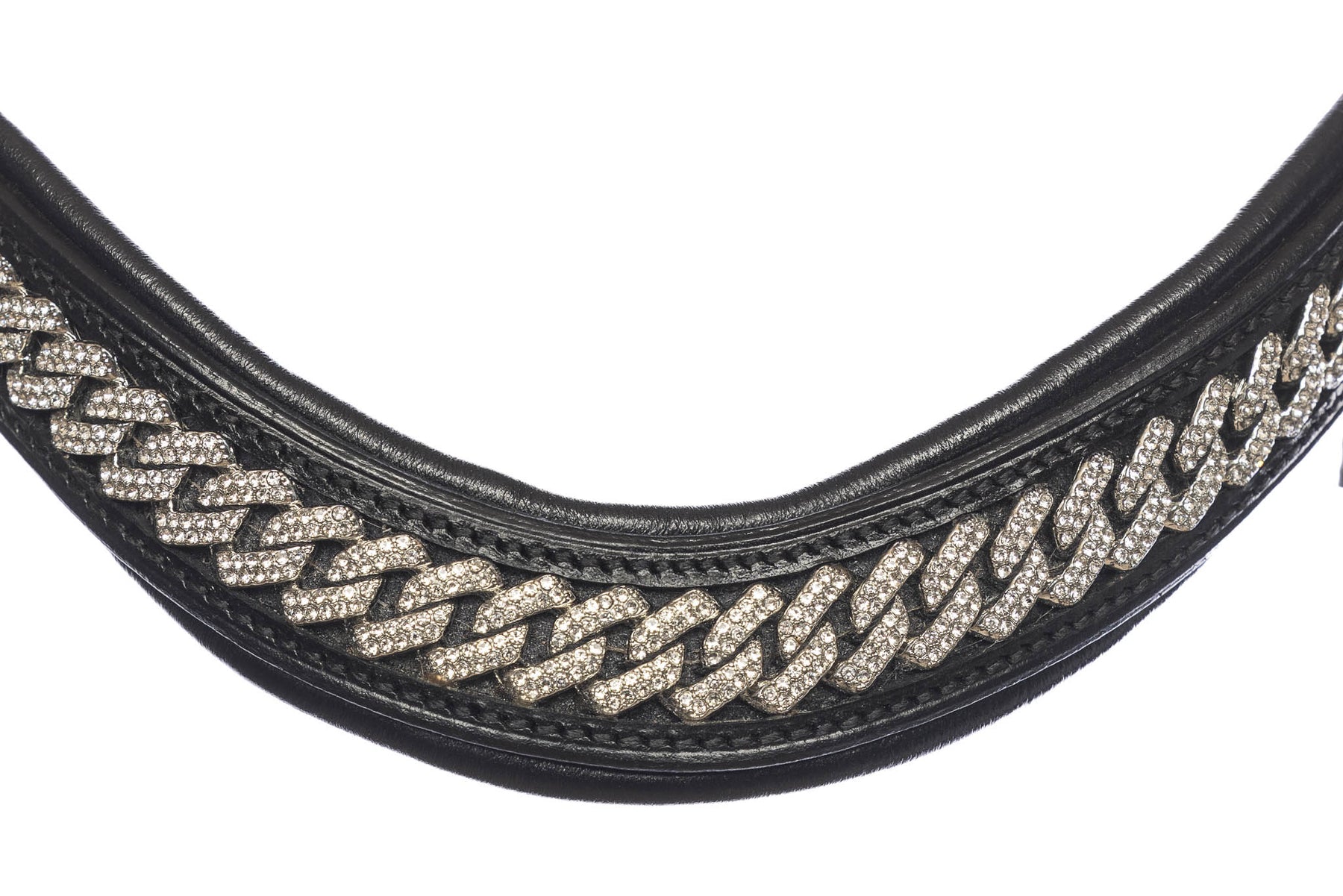 Böjt pannband med ekklusiv silverfärgad ”Crystal Curb” utsmyckning.